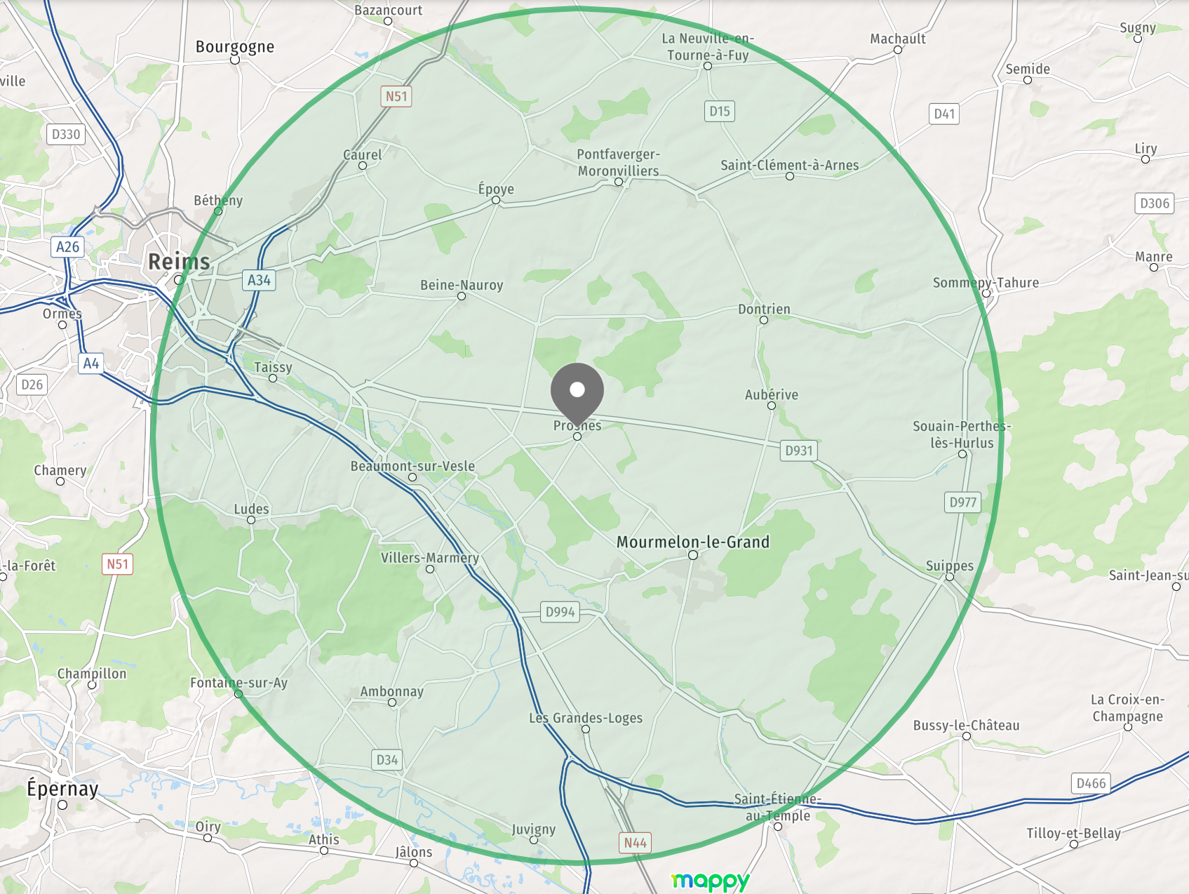 Gratuitement dans un rayon de 20 km autour de Prosnes(51400). (Voir plan ci-dessous)